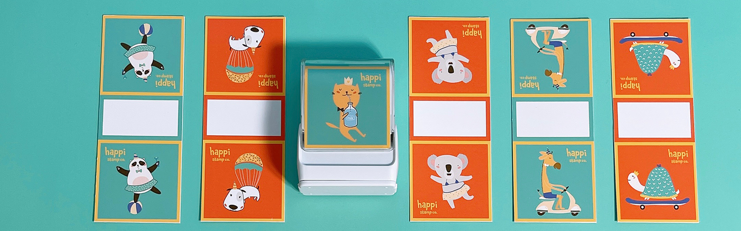 Check out our collections of name stamps and stick-on name stickers.